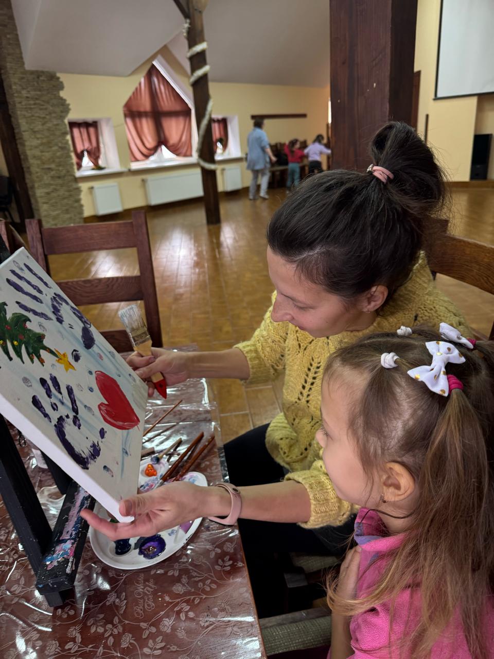 The trip program included an excursion to the Kamianets-Podilskyi Waterfall, rest at the Perlyna Karpat hotel in Slavsk, a psychological group lesson, an art therapy master class, where children and their mothers created their own joint picture, songs by the campfire, roasting marshmallows, sledding and time spent together for entertainment.